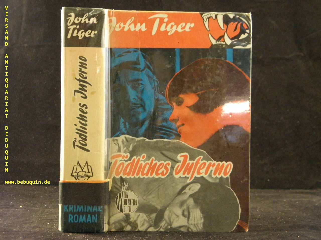 JOHN TIGER: Tödliches Inferno. Kriminalroman. Münster (Merceda), ca 1950. 240 S. farb. ill. OPb. gestempeltes Leihbuch. EA.