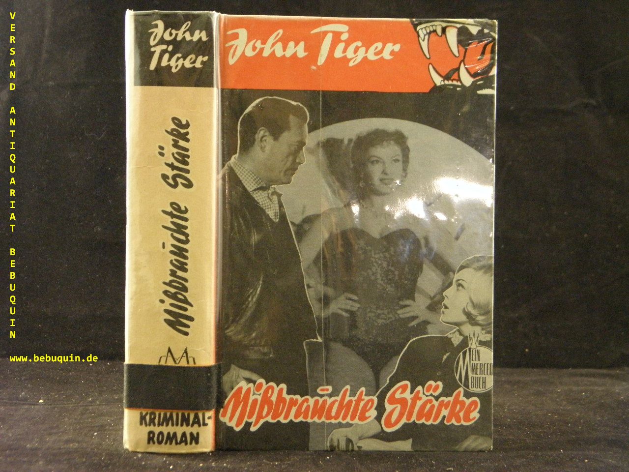 JOHN TIGER: Mißbrauchte Stärke. Kriminalroman. Münster (Merceda), ca 1950. 240 S. farb. ill. OPb. gestempeltes Leihbuch. EA.