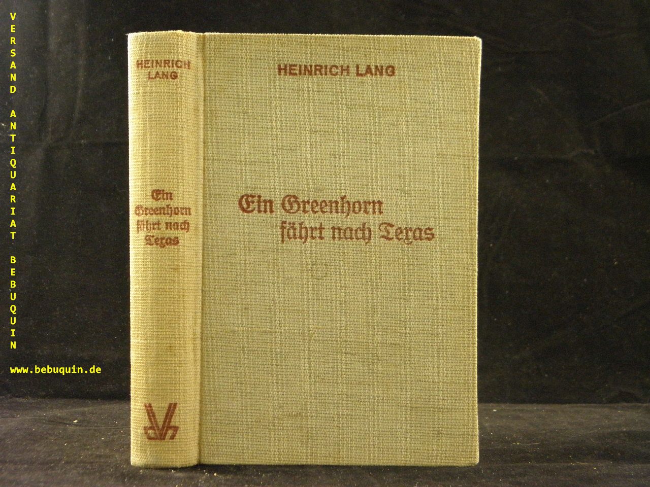 LANG, Heinrich: Ein Greenhorn fährt nach Texas. Abenteuerroman. Niedersedlitz (Vaterhaus), 1937. 275 (3) S. OLn. gutes Ex. EA.