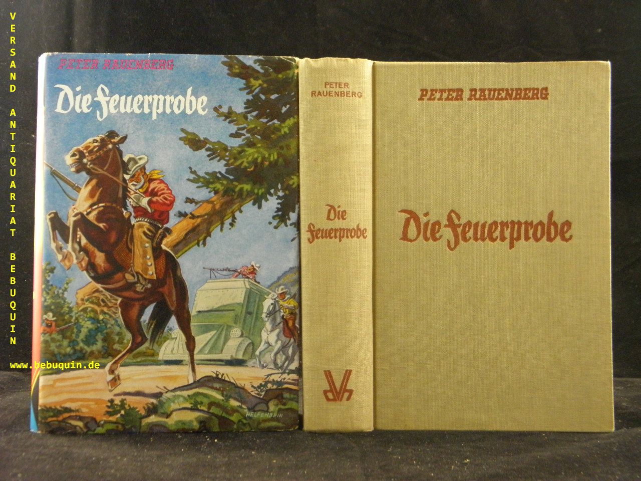 RAUENBERG, Peter: Die Feuerprobe. Abenteuerroman. Niedersedlitz (Vaterhaus), 1936. 295 (7) S. OLn. mit OUmschl. feines Ex. sehr seltene EA.