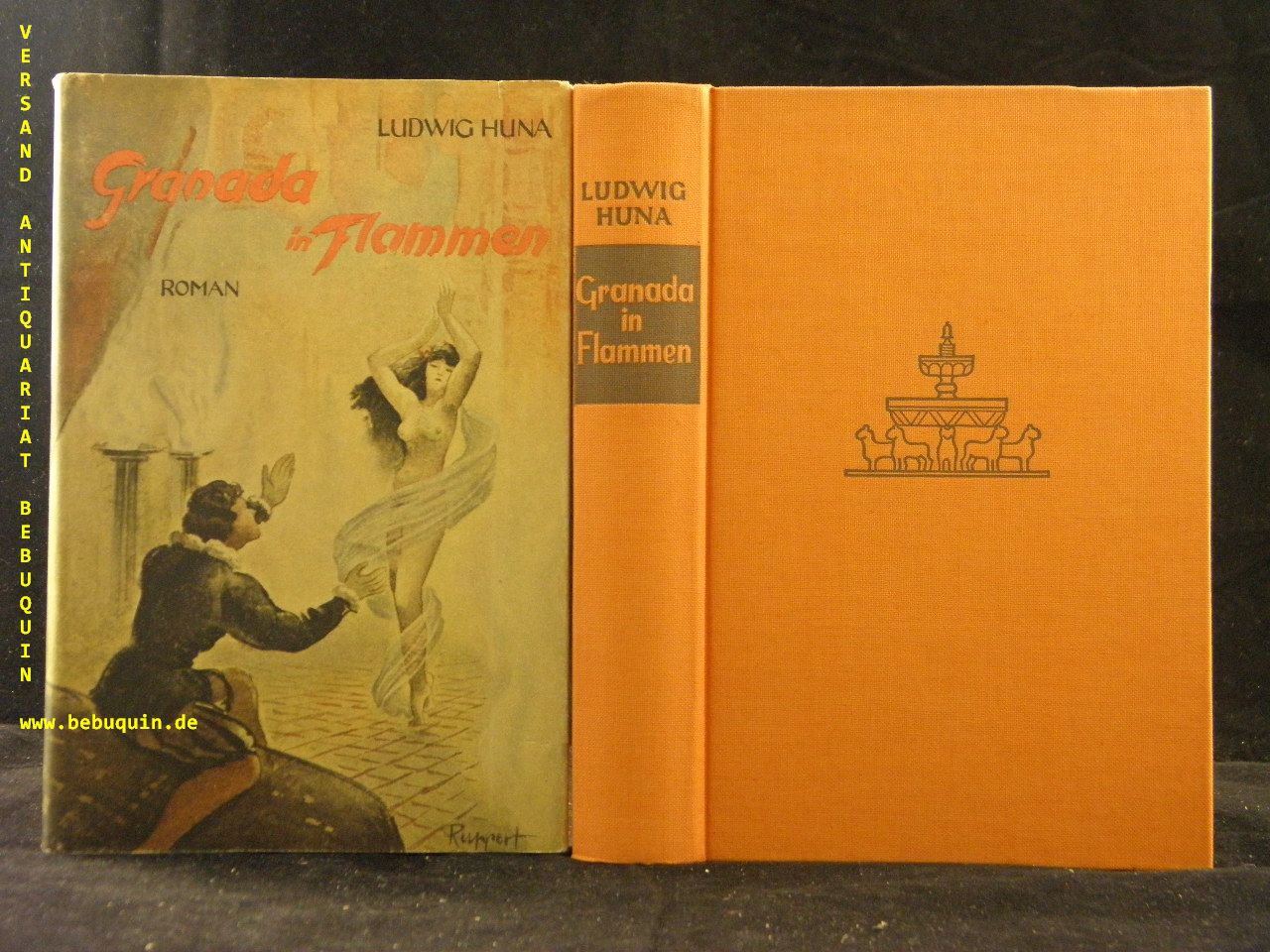 HUNA, Ludwig: Granada in Flammen. Berlin (Paul Franke), 1927. 358 (2) S. ill. OLn mit OUmschl. feines Ex. 1. Aufl. dieser Ausgabe im Jahr der EA.