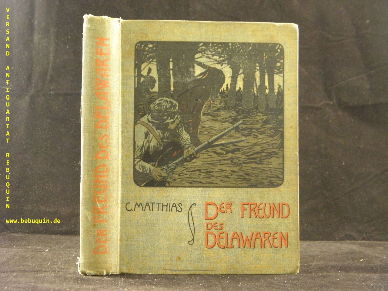 KOLONIEN.– MATTHIAS, Carl: Der Freund der Delawaren. Eine Erzählung für die Jugend aus dem Nordamerikanischern Freiheitskriege. Stuttgart (Levy & Müller), (1903). . Gr. 8°. 298 (2) S. mit 4 Autotypien nach Originalen von Fritz Bergen. farb. ill. OLn. Gelenke etwas gelockert, sonst gut erhalten. EA. Klotz 4477/2.