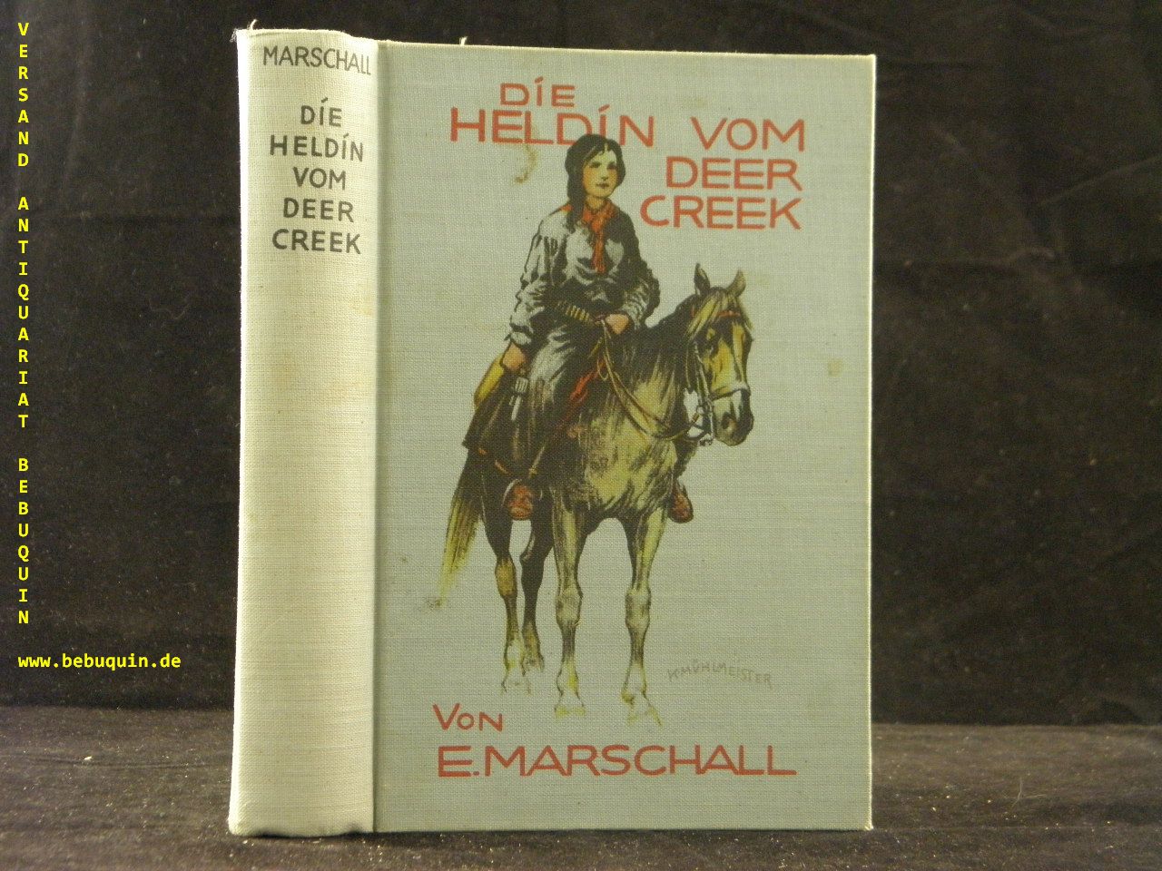 MARSCHALL, Edison: Die Heldin vom Deer Creek. Ein Roman aus den Urwäldern Nordamerikas. D.v. Susanne Tornwaldt. Berlin (Weichert), (1933). 287 S. mit zahlr. Bildern von Rolf Winkler. farb. ill. OLn. von Karl Mühlmeister. NaV, kaum bestaubt. 1. Auflage dieser Ausgabe. Klotz 4429/3.