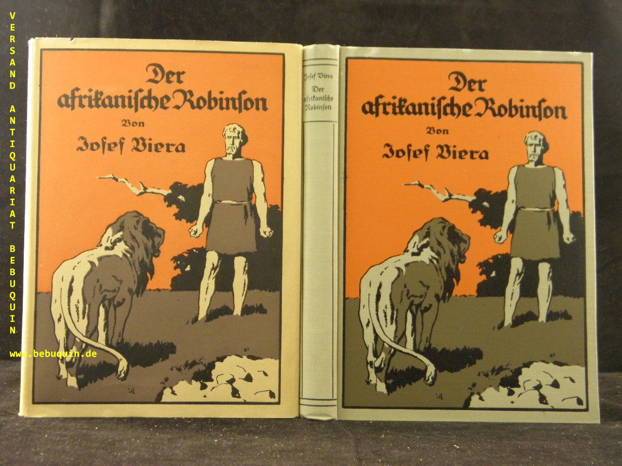 KOLONIEN.– VIERA, Josef: Der afrikanische Robinson. Reutlingen (Enßlin & Laiblin), 1927. 221 (3) S. mit zahlr. Textabb. + 4 Farbtafeln von F. Müller-Münster. ill. OLn. mit OUmschl. tadellos. EA. Klotz 7713/80.