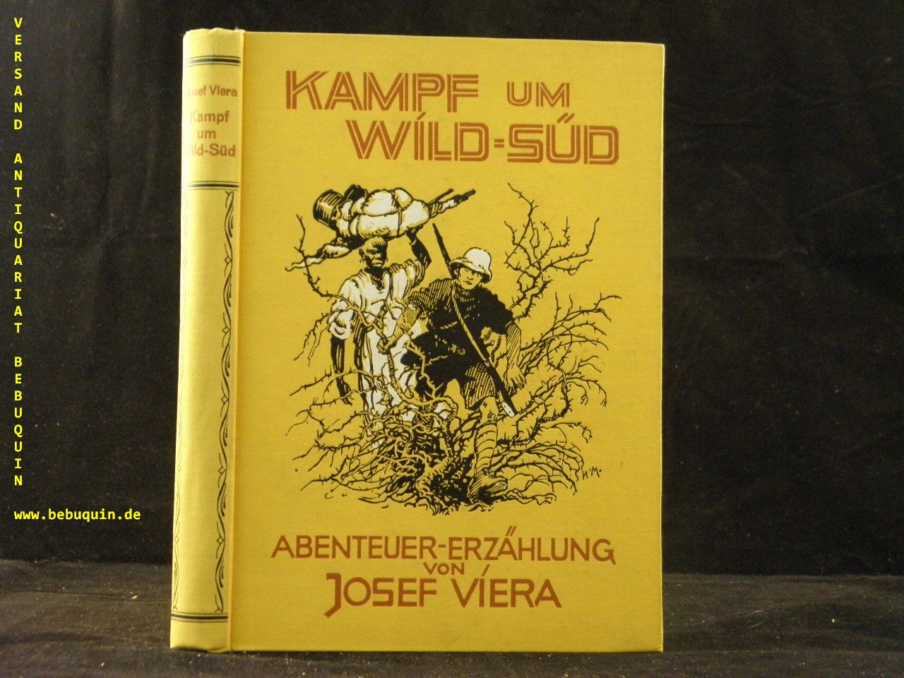 KOLONIEN.– VIERA, Josef: Kampf um Wild-Süd. Afrika-Erzählung aus großer Zeit. Reutlingen (Enßlin & Laiblin), 1929. 224 S. mit zahlr. getönten Textabb. + 4 Farbtafeln von Karl Mühlmeister. farb. ill. OLn. tadellos. EA. Klotz 7713/55.