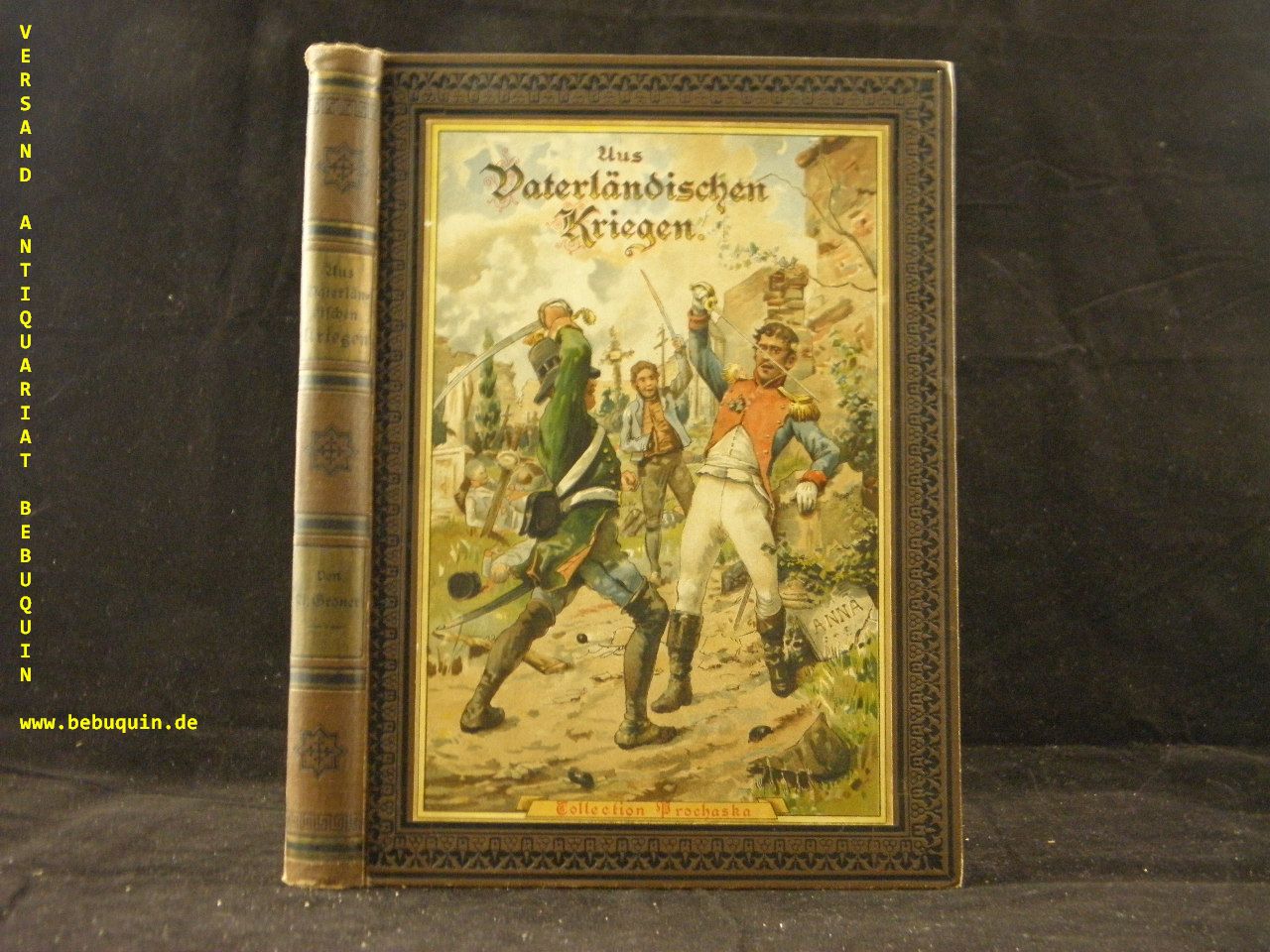 GRONER, Auguste: Aus vaterländischen Kriegen. Drei Erzählungen. Wien (Prochaska), (1880). Gr. 8°. 249 (1) S. + 7 (davon 3 farb.) Bildtafeln. ill. OLn. mit mont. Farbbild. gutes Ex. EA. Klotz 2091/12.