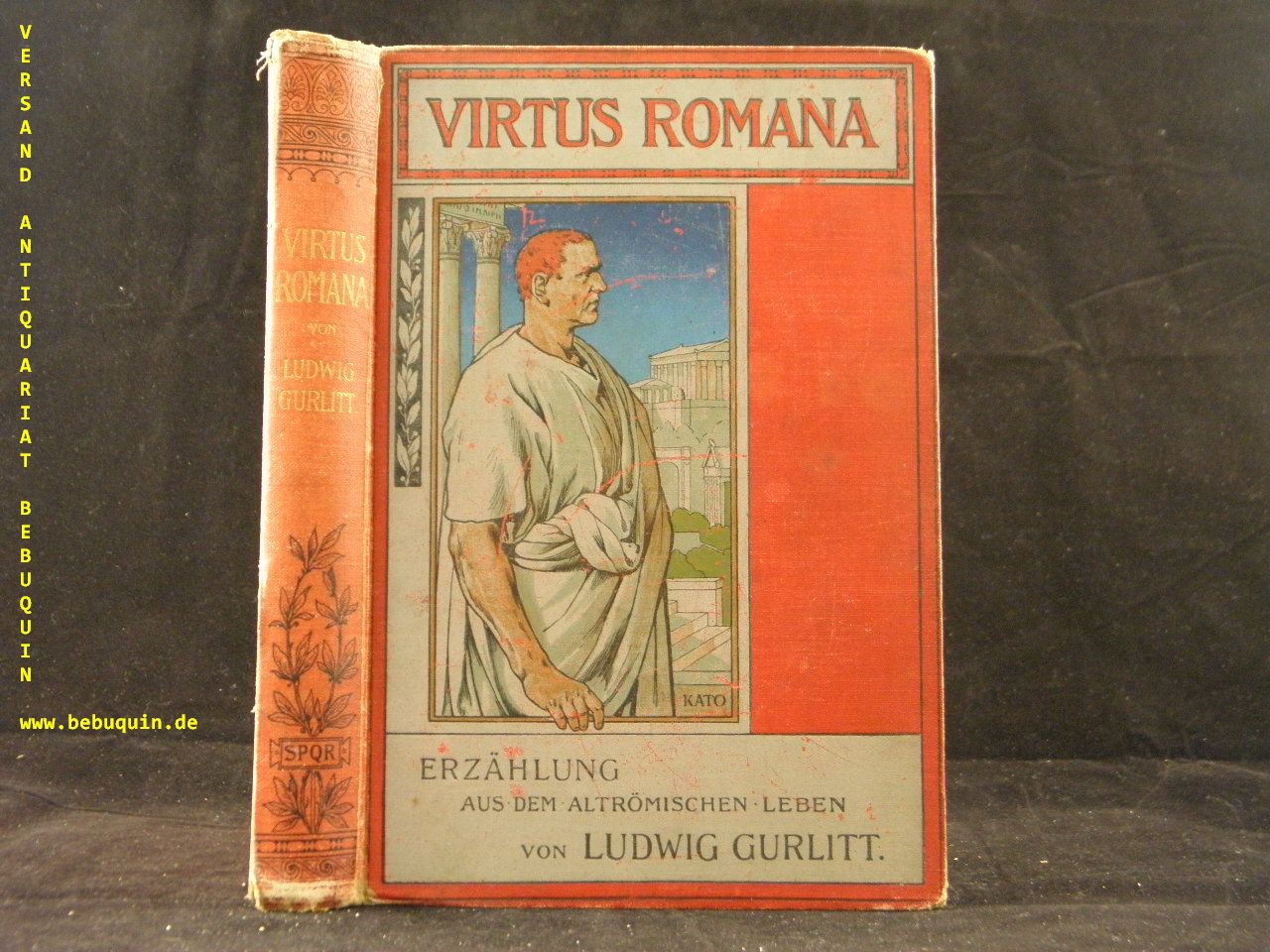 GURLITT, Ludwig: Virtus Romana. Erzählung aus dem römischen Leben. Leipzig (Hirt), 1904. Gr. 8°. 256, 16 S. mit 8 Bildern von Johannes Gehrts. ill. OLn. NaT, Titelei und Schnitt fleckig. EA. Klotz 2196/1.