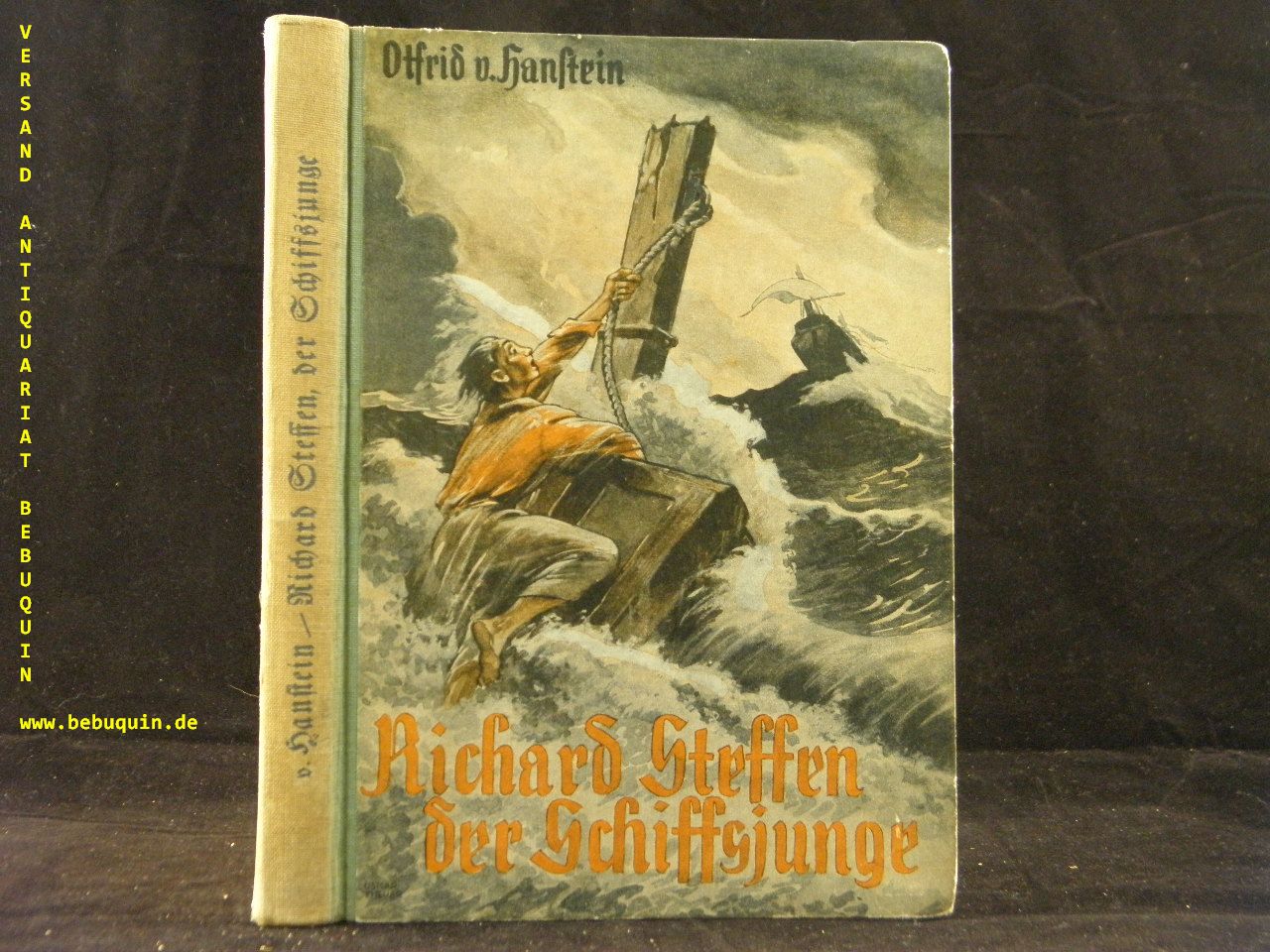 HANSTEIN, Otfrid von: Richard Steffen der Schiffsjunge. Jugenderzählung. Berlin (Franke), 1931. 160 S. mit zahlr. Bildtafeln + 1 farb. Titelbild. farb. ill. OHLn. Rücken geblichen, WaV. 1. Aufl. dieser Ausgabe. Schegk / Wimmer S9.