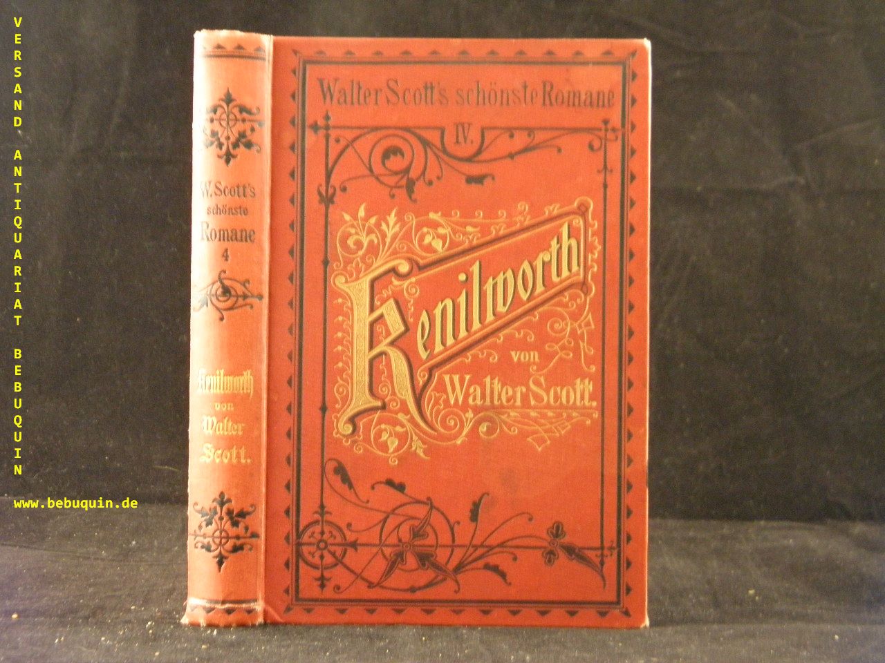 SCOTT, Walter: Kenilworth. D.v. Robert König. 3. Aufl. Bielefeld (V&K), 1890. 406 (2) S. mit 8 Tonbildern von P. Grotjohann. reich verziertes OLn. innen leicht gebräunt. = Walter Scott’s schönste Romane IV.