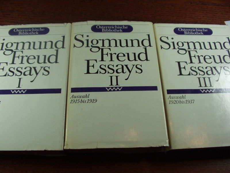 FREUD, Sigmund: Essays. Auswahl in 3 Bänden. Berlin (Volk und Welt), 1988. 575, 558, 594 S. OLn mit OUmschl. komplett.