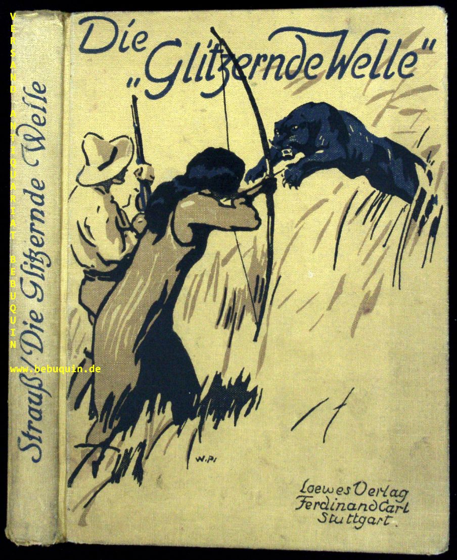 STRAUSS, Fritz: Die Glitzernde Welle. Eine Erzählung aus den Wäldern Südamerikas. Stuttgart (Loewe), (1929). 127 S. mit 4 Buntbildern von Willy Planck. farb. ill. OLn. NaV, WaT, leicht bestaubt. EA. Klotz 7183/28.