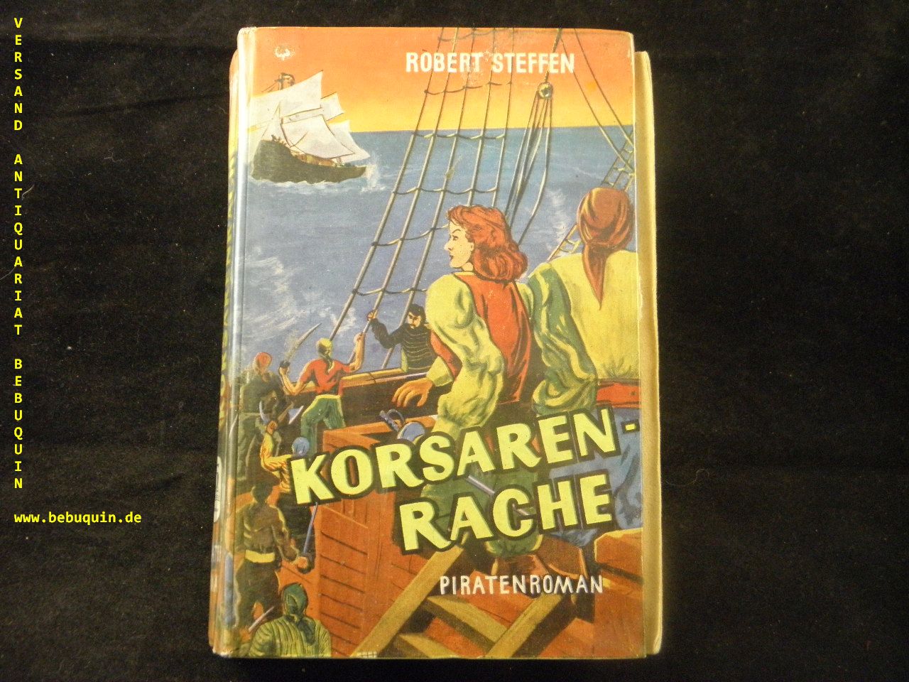 STEFFEN, Robert: Korsarenrache. Piraten-Roman. Balve (Hönne), ca 1955. 255 S. farb. ill. OPb. gestempeltes Leihbuch, schief gelesen. EA.