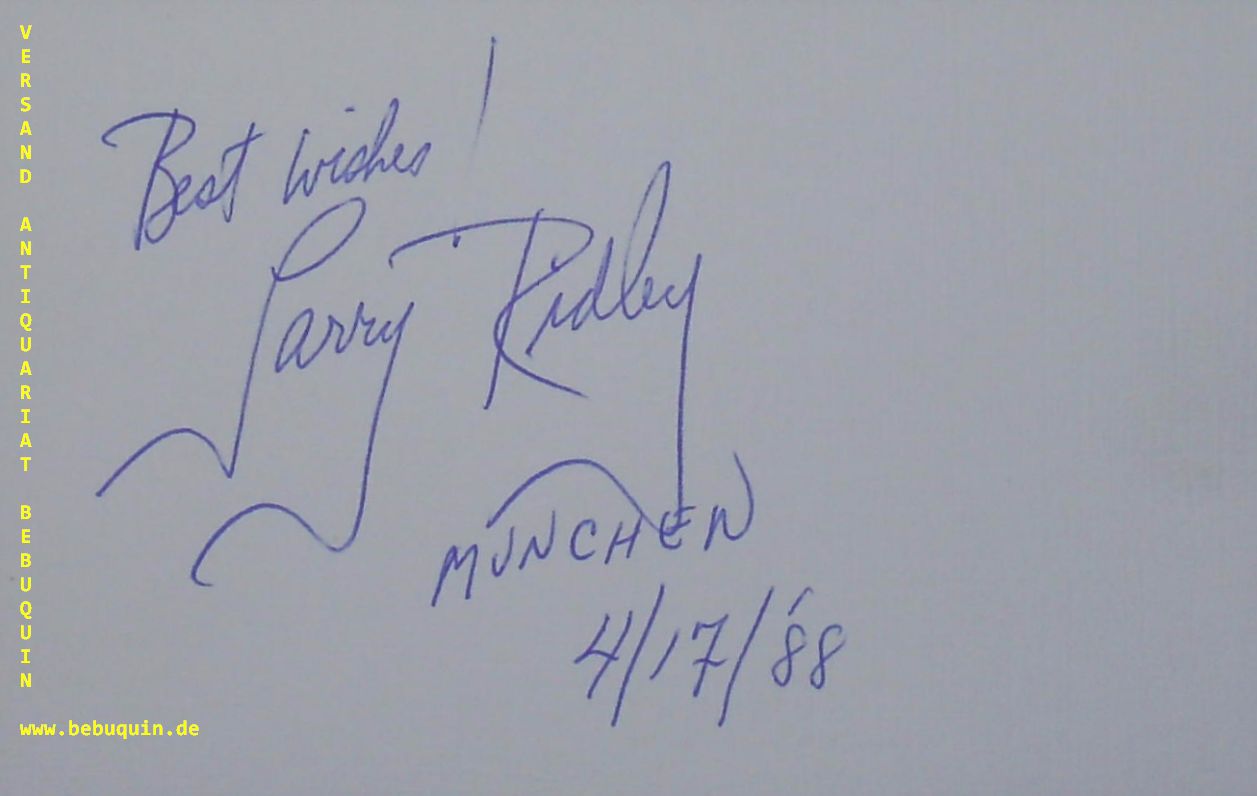 JAZZ.– RIDLEY, Larry (Bassist): eigenhändig signierte und datierte Autogrammkarte. München, 17.4.1988. 8 x 12,5 cm. Karteikarte.