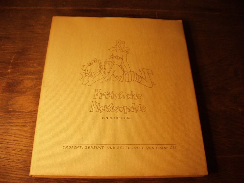 OST, Frank: Fröhliche Philosophie. Ein Bilderbuch. Nürnberg (Selbstverlag), ca 1940. 4°. o.S. mit Handzeichnungen. OLn mit OUmschl. 1 von 500 (hier nicht gezähltes) Ex. der EA.
