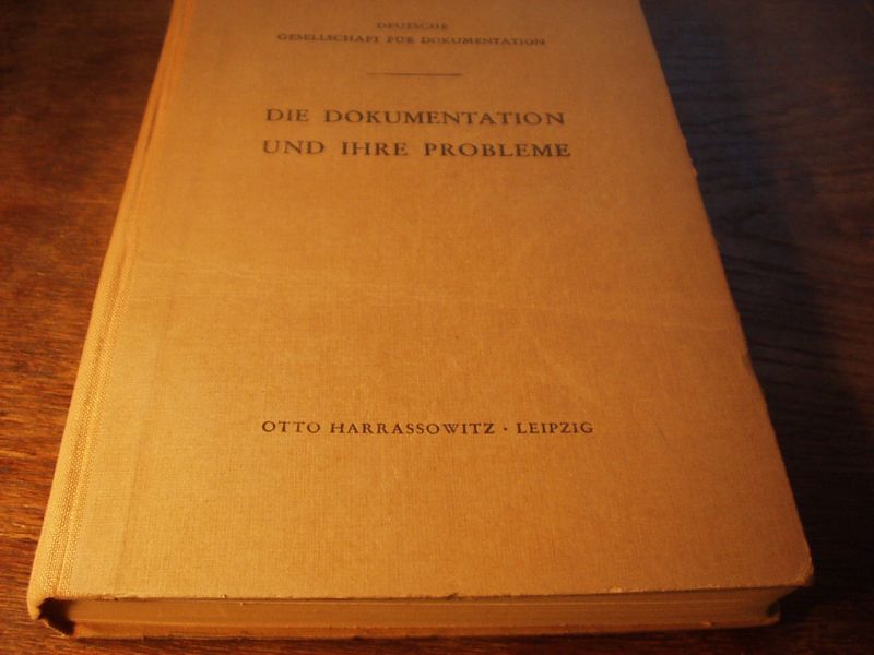 PRINZHORN, Fritz: (Vorw.) Die Dokumentation und ihre Probleme. Vorträge gehalten 1942 in Salzburg. Leipzig (Harrassowitz), 1943. 4°. 205 S. mit 5 Bildtafeln. OHLn. EA.