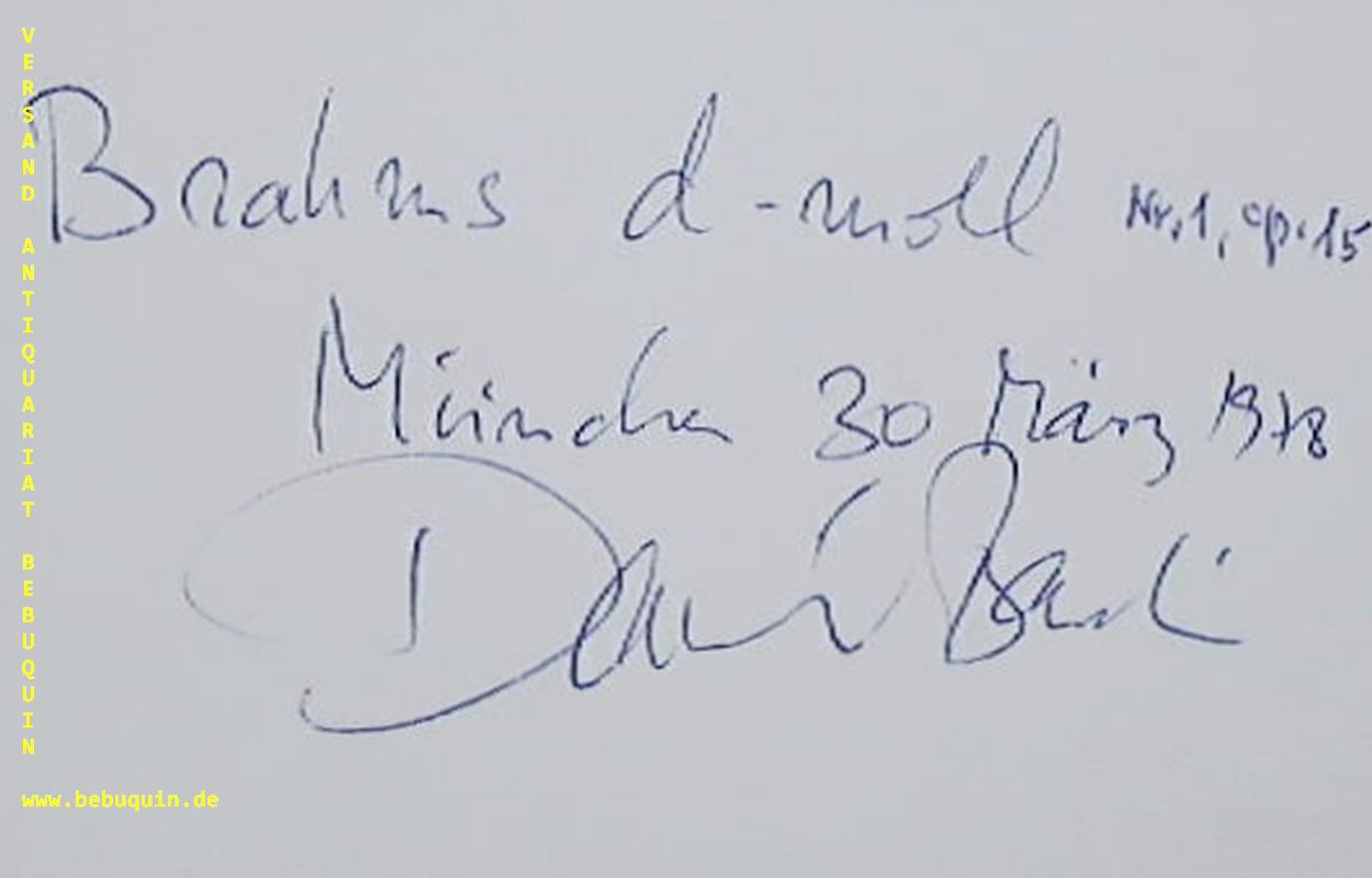 BARENBOIM, eigenhändig signierte und datierte Autogrammkarte zu Brahms d - moll.