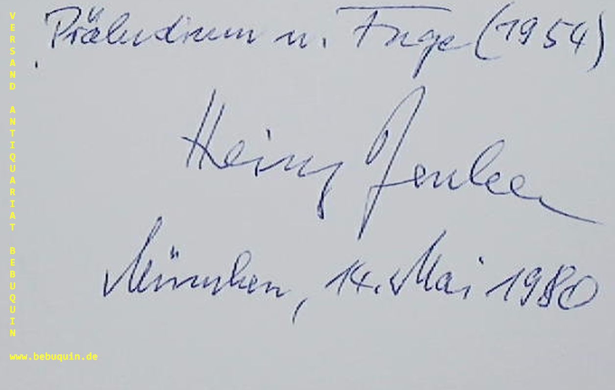 BENKER, Heinz (Komponist): eigenhändig signierte und datierte Autogrammkarte: Präludium u. Fuge (1954). München (Philharmonie), 14.5.1980. 8 x 12,5 cm. Karteikarte. Heinz Benker (* 13. März 1921 in Landshut, Bayern; † 2. Juni 2000 in München) war ein deutscher Komponist und Musiker. (Wikipedia)