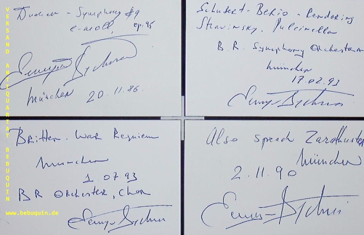BYCHKOV, Semyon (Dirigent): 9 eigenhändig signierte und datierte Autogrammkarte mit genauen eigenhändigen Programmbeschreibungen. München (Philharmonie), 1986 – 1993. 8 x 12,5 cm. 9 Karteikarten. Semjon Majewitsch Bytschkow (* 30. November 1952 in Leningrad, Russische SFSR, Sowjetunion) ist ein Dirigent sowjetischer Herkunft.