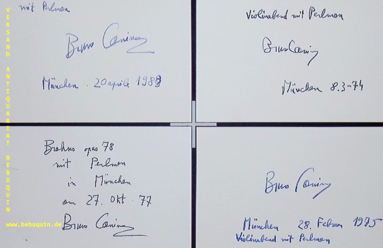 CANINO, Bruno (Pianist, Komponist): 8 eigenhändig signierte und datierte Autogrammkarten mit Perlman. München (Philharmonie), 1974 – 1991. 8 x 12,5 cm. 8 Karteikarten. Bruno Canino (* 30. Dezember 1935 in Neapel) ist ein italienischer Pianist und Komponist. (Wikipedia)