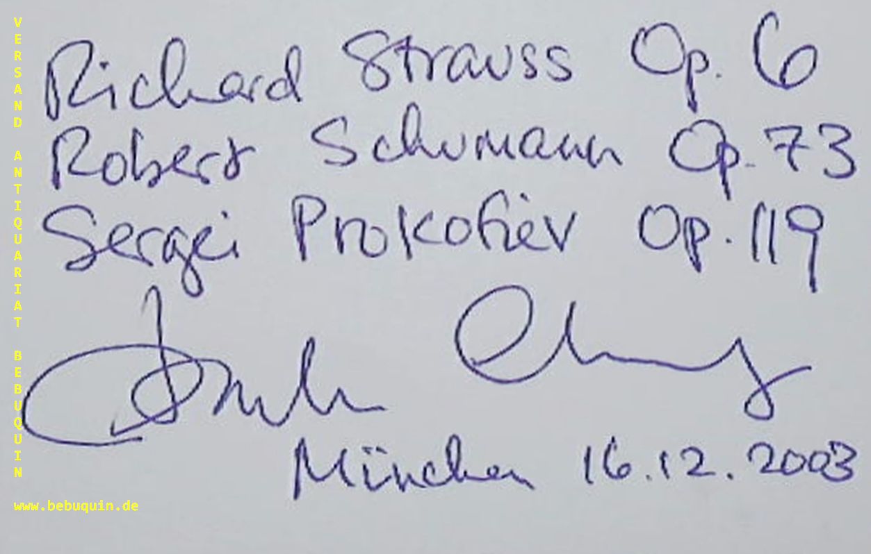 CHANG, eigenhändig signierte und datierte Autogrammkarte: Strauss, Schumann, Pr