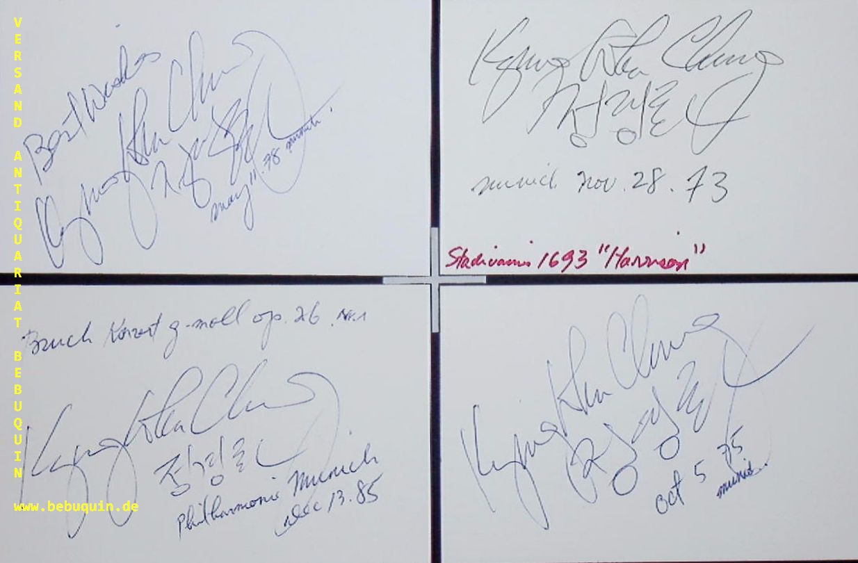 CHUNG, Kyung-wha (Violinistin): 6 eigenhändig signierte (zweisprachig) und datierte Autogrammkarten mit teils eigenhändigen Stückbeschreibungen. München (Herkulessaal), 1973 – 1985. 8 x 12,5 cm. 6 Karteikarte Chung Kyung-wha (* 26. März 1948 in Seoul, Südkorea) ist eine südkoreanische Geigerin. (Wikipedia)