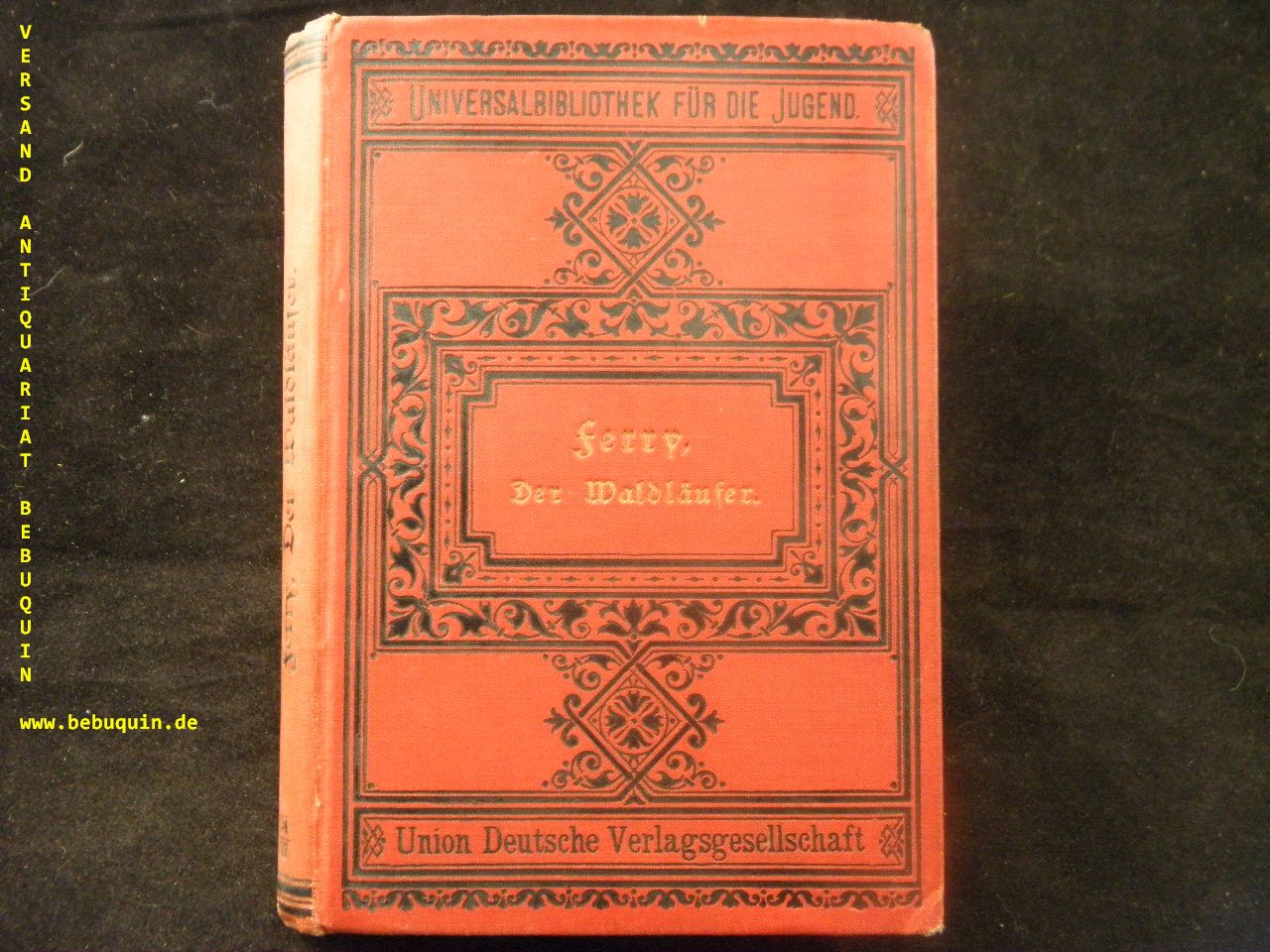 FERRY, Gabriel: Der Waldläufer. Bearb. von E. Trautmann. Stuttgart (Union), (1880). 320 S. mit 5 eingedruckten Holzschnittabb. ill. OLn. NaV, wenig angeschmutzt, gute Erhaltung. = Universalbibliothek für die Jugend 24./27. Bd. seltene 1. Aufl. dieser Ausgabe. Klotz 1451/48.