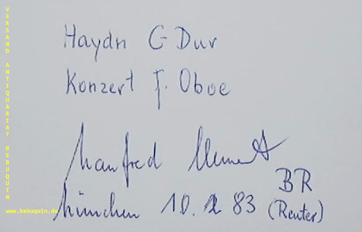 CLEMENT, Manfred (Oboist): eigenhändig signierte und datierte Autogrammkarte. München (Herkulessaal), 10.2.1983. 8 x 12,5 cm. Karteikarte. Manfred Clement. Geboren: 1934. Gestorben: 2001