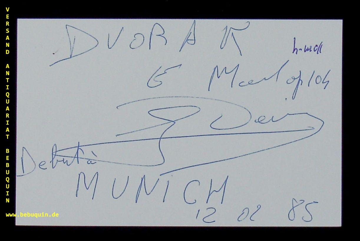 DERRIEN, Hervé (Cellist): eigenhändig signierte Autogrammkarte. München Debut. München (Herkulessaal), 12.2.1985. 8 x 12,5 cm. Karteikarte.