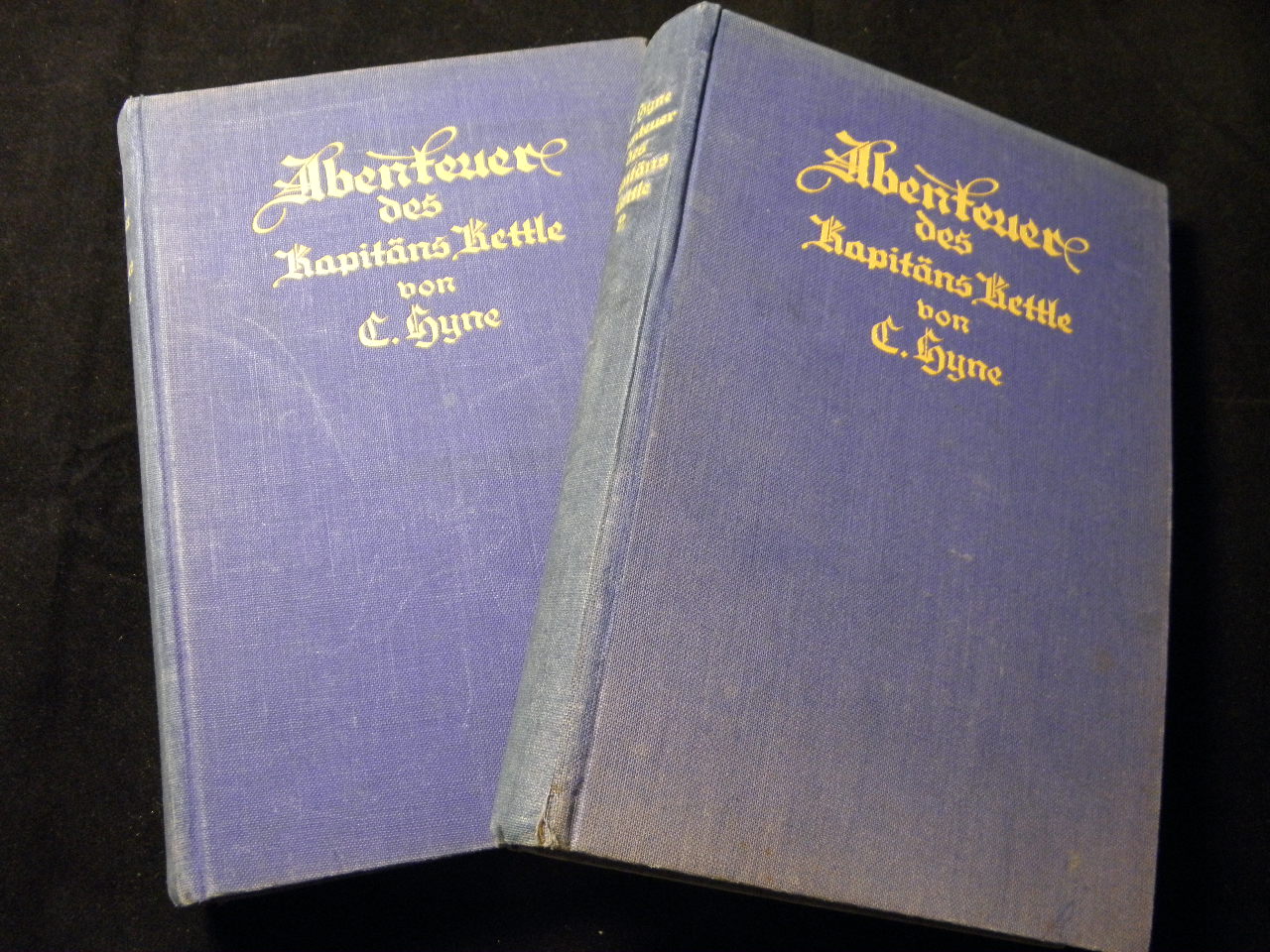 HYNE, C.: Abenteuer des Kapitäns Kettle. D.v. Hans Lindner. 3. Aufl. 2 Bände (so komplett). Stuttgart (Lutz), ca 1928. 351, 342 S. mit 20 Bildtafeln. OLn. leichte Gebrauchsspuren.