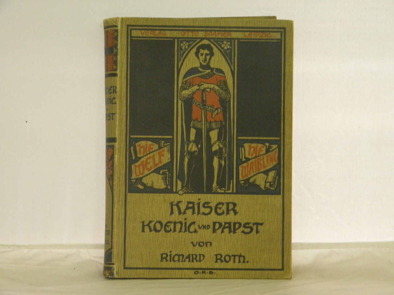 ROTH, Richard: Kaiser, König und Papst. Historische Erzählung aus der Zeit der Hohenstaufenkämpfe in Italien. 6. Aufl. Leipzig (Spamer), 1908. Gr. 8°. 320 S. mit 75 Abb. von Nic. Sanesi und Joh. Schönberg. farb. ill. OLn. gutes Ex. Klotz 6016/20.