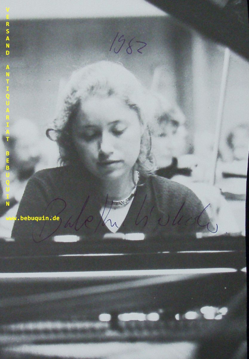 HIERHOLZER, Babette (Pianistin): eigenhändig signiertes Portrait. München, 19.4.1982. 21 x 14,5 cm. 2 Blatt aus Programmheft. Babette Hierholzer (* 27. März 1957 in Freiburg im Breisgau) ist eine deutsch-amerikanische Pianistin. (Wikipedia)