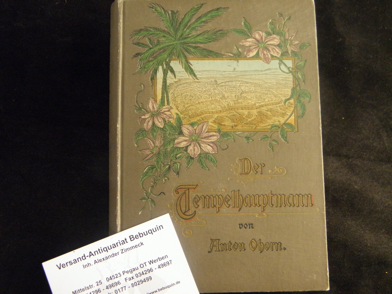 OHORN, Anton: Der Tempelhauptmann. Historische Erzählung aus der Zeit der Zerstörung Jerusalems. Leipzig (Bredt), 1899. 2 Bl., 376 S. farb. ill. OLn mit einer Ansicht von Jerusalem. WaT. seltene EA. Klotz 5167/31.