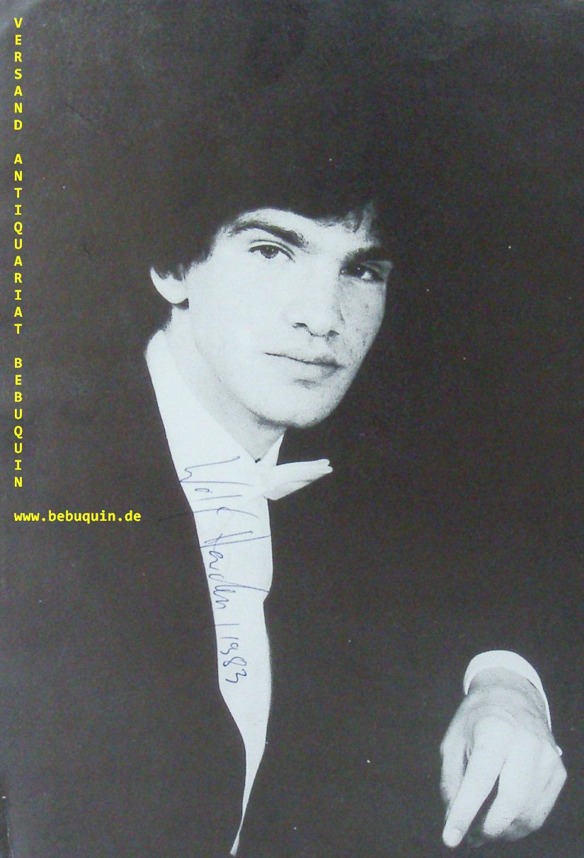 HARDEN, Wolf (Pianist): eigenhändig signiertes und datiertes Potrait aus Programmheft. München (Herkulessaal), 20.12.1984. 21 x 14 cm. 1 Bl. Wolf Harden (* 13. Mai 1962 in Hamburg) ist ein deutscher Pianist. Mit dem Geiger Michael Mücke und dem Cellisten Niklas Schmidt gründete Harden 1980 das Trio Fontenay. Der Gewinn des Mendelssohn-Preises 1982 und des ersten Preises beim Deutschen Musikwettbewerb 1986 begründeten die internationale Karriere des Trios. Zahlreiche mit Auszeichnungen prämierte Aufnahmen dokumentieren den Erfolg. Als sich das Trio 2006 nach mehr als 2000 Konzerten und 35 Einspielungen endgültig trennte, hatte sich Wolf Harden bereits mit vielen CD-Einspielungen einen Namen als Solist gemacht. (Wikipedia)