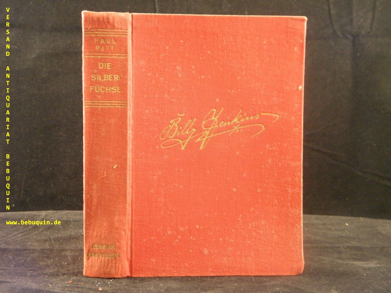 BILLY JENKINS.– 052 / PITT, Paul: Die Silberfüchse. Ein Abenteuer des Westmannes Billy Jenkins Leipzig (Dietsch), 1939. 288 S. rotes OLn mit goldgepräghter Signatur. Einband leicht geblichen, NaV., hinteres Gelenk leicht gelockert, insgesamt gutes Ex. = Bücher der Spannung, Nr. 52. EA.