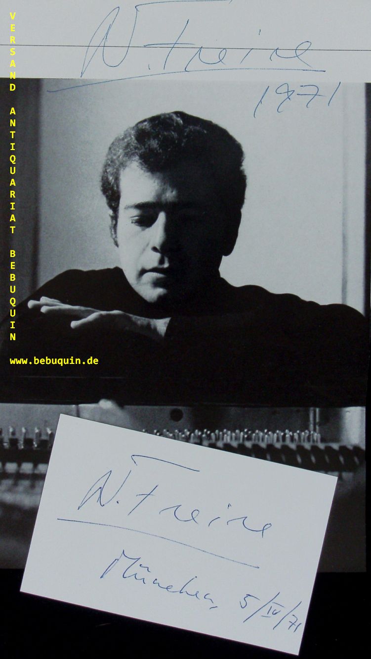 FREIRE, Nelson (Pianist): eigenhändig signiertes Portrait aus Programmheft. München (Herkulessaal), 26.10.1975. 20 x 14 cm. 1 Bl. Dabei eigenhändig signierte und datierte Autogrammkarte. letztere auf der Rückseite mit Fleck. Nelson Freire (* 18. Oktober 1944 in Boa Esperança, Bundesstaat Minas Gerais, Brasilien) ist ein brasilianischer Pianist. (Wikipedia)
