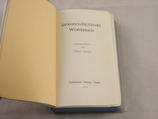 JAPANISCH.– SAGARA, Morio: Japanisch-Deutsches Wörterbuch. Tokio (Sansyusya), 1957., kl. 8°. 645 S. mit einer farb. Karten suf hinterem Vorsatz. OLn. mit OUmschl. tadellos. EA.