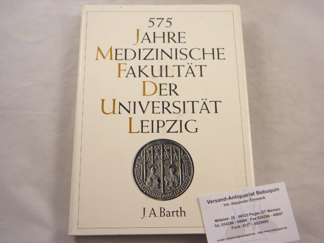 LEIPZIG.– KÄSTNER, Ingrid + THOM, Achim: (Hrsg.) 575 Jahre Medizinische Fakultät der Universität Leipzig. Leipzig (Barth), 1990. Gr. 8°. 348 S. mit 146 Bildern und 6 Tabellen. OLn. mit OUmschl. tadellos. EA.
