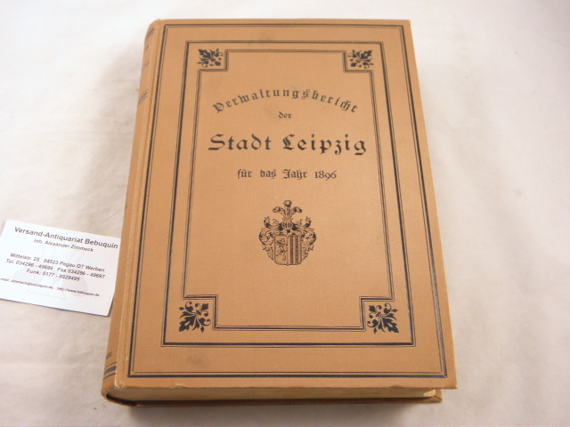 LEIPZIG.– VERWALTUNGSBERICHT DES RATHES DER STADT LEIPZIG FÜR DAS JAHR 1896.– Leipzig (Duncker & Humblot), 1898. 4°. IV, 843 S. ill. OLn mit Schwarzprägung. feines Ex.
