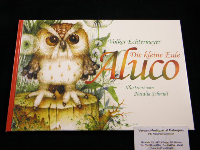 ECHTERMEYER, Volker: Die kleine Eule Aluco. Minden (Bruns), o.J. Quer 4°. 12 Bl mit farb. Bildern von Natalia Schmidt. farb. ill. OPb. wie neu. 1 von 1000 Ex. der EA.
