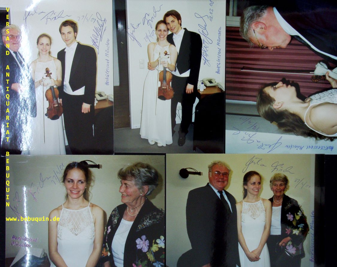 FISCHER, Julia (Violinistin) + SCHUCH, Herbert (Pianist): 5 eigenhändig von Julia Fischer und zwei von beiden signierte und datierte eindrucksvolle private Farbfotos mit und ohne Willi Seifert. München (Philharmonie), 2001. 18 x 12,5 cm 5 Original Fotos aus dem Herkulessaal in München. Julia Fischer (* 15. Juni 1983 in München) ist eine deutsche Geigerin und Pianistin. Herbert Schuch (* 13. September 1979 in Timioara, Sozialistische Republik Rumänien) ist ein in Köln lebender Pianist. 1988 siedelte er mit seiner Familie nach Deutschland über.. (Wikipedia)