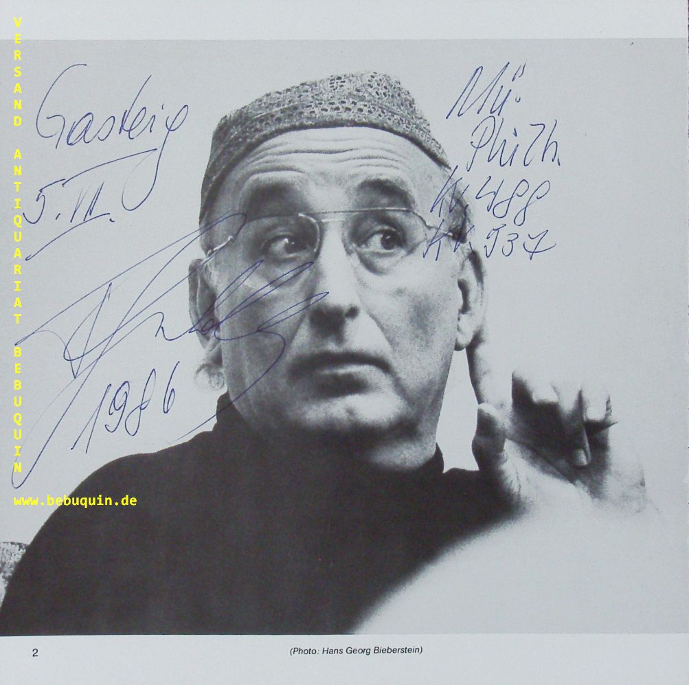GULDA, Friedrich (Komponist): eigenhändig signierte und datierte Portraitseite von Hans Georg Bieberstein.. München (Hörtnagel), 5.7.1986. 20 x 20 cm 1 Bl. Friedrich Gulda (* 16. Mai 1930 in Wien; † 27. Jänner 2000 in Weißenbach am Attersee) war ein österreichischer Pianist und Komponist. (Wikipedia)