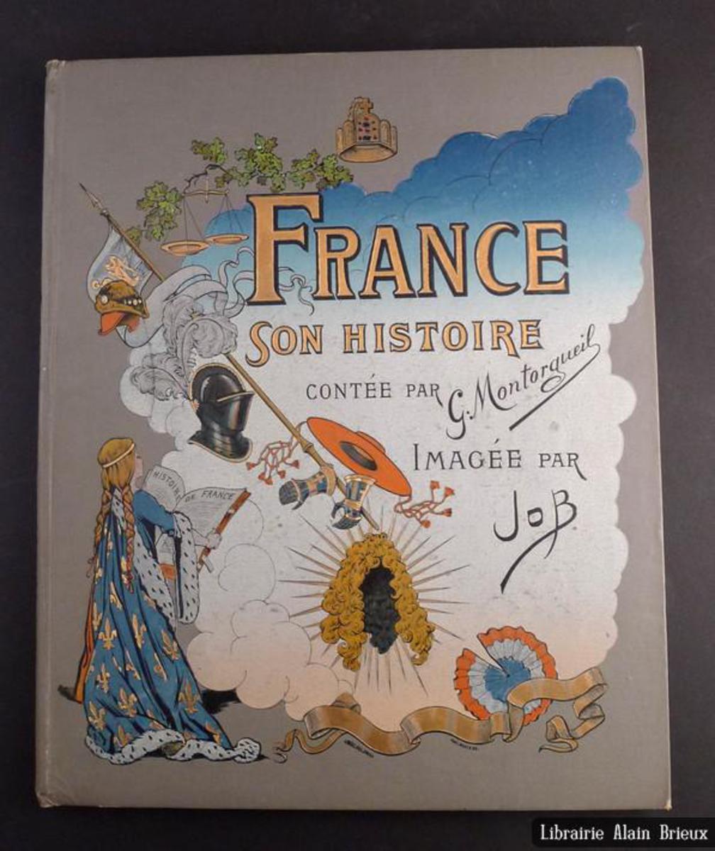MONTORGUEIL, G.: France. Son histoire jusqu’en 1789. Paris (Charavay, Mantoux, Martin), ca 1900. Fol. ca 80 S. mit zahlr. farb. Textillustrationen von Job. farb. ill. OLn. Gelenke stabilisiert, gutes Ex. dieses durchgestylten historischen Bilderbuchs. EA.