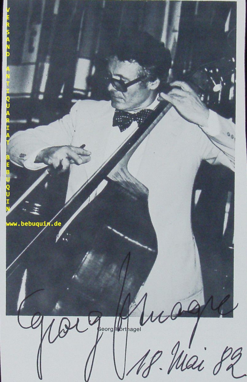 HÖRTNAGEL, Georg (Bassist): eigenhändig signierte und datierte Portraitseite. München (Philharmonie), 18.5.1982. 19 x 12 cm. 2 Bl.