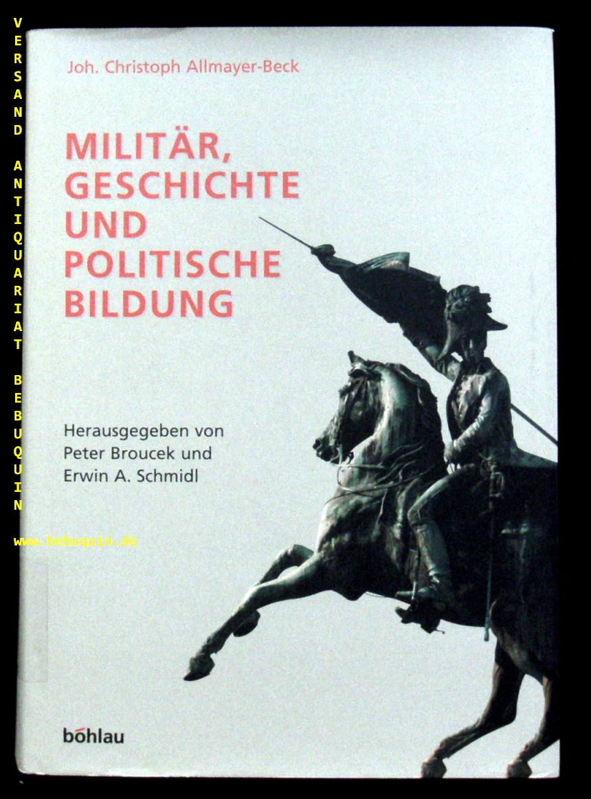 ÖSTERREICH.– ALLMAYER-BECK, Joh. Christoph: Militär, Geschichte und Politische Bildung. Aus Anlaß des 85. Geburtstages des Autors. Herausgegeben von Peter Broucek und Erwin A. Schmidl. Wien (Böhlau), 2003. 519 S. OLn. mit OUmschl. Ordnungsgemäß aus Bundeswehrbeständen ausgesondertes Bibliotheksexemplar (Rückenschild, Stempel). EA.
