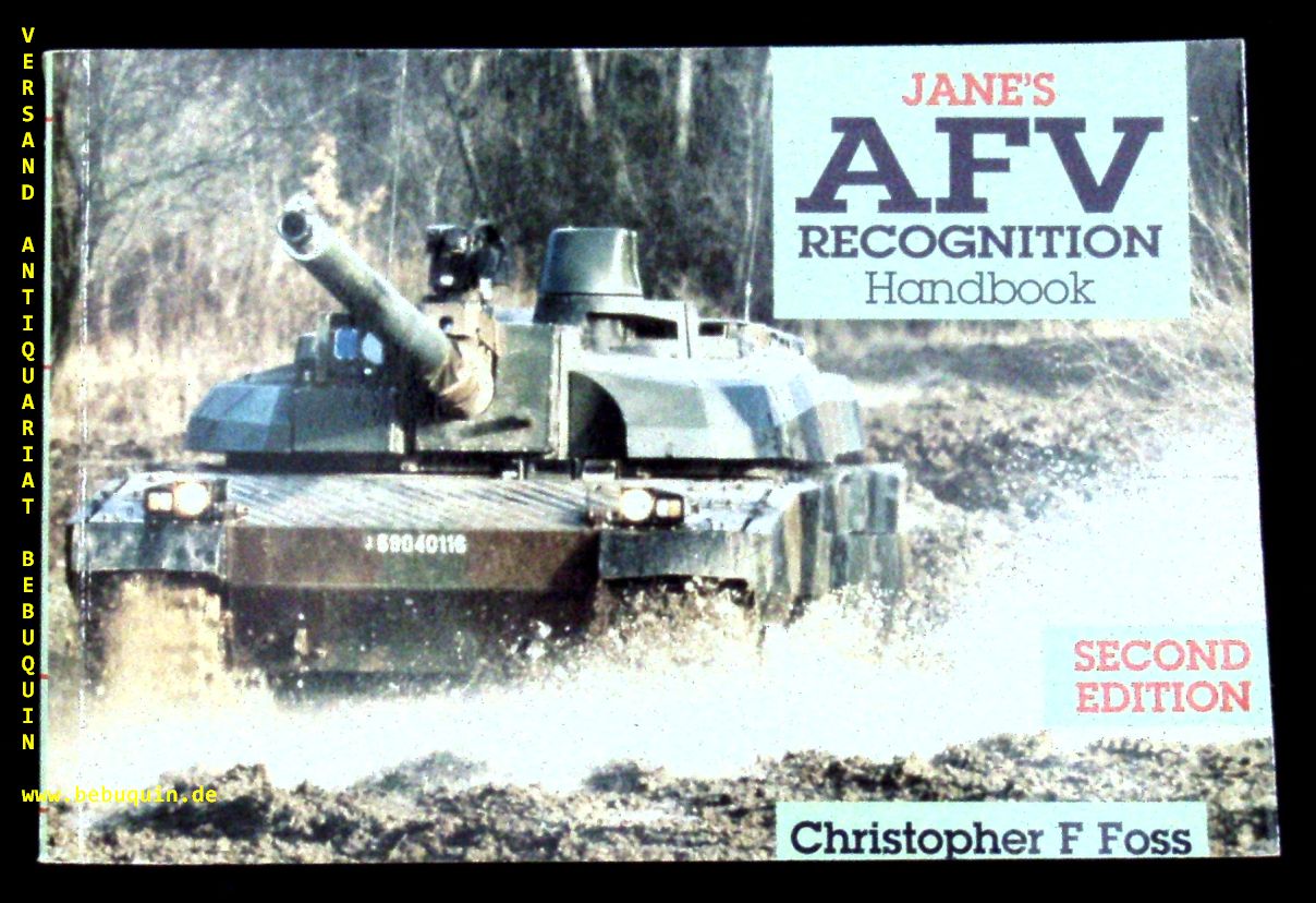 FOSS, Christopher F.: Janes’s AFV Recognition Handbook. 2. Edition. Coulson, 1992. Quer 8°. 579 S. mit zahlr. Bildern. farb. ill. OKart. Ordnungsgemäß aus Bundeswehrbeständen ausgesondertes Bibliotheksexemplar (Stempel und Rückenschild).