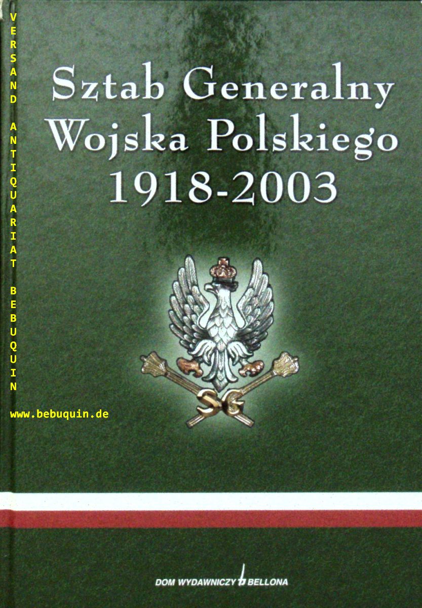 POLEN.– PANECKI / PUCHALA / SZOSTAK: Sztab Generlny (Glowny) Wojska Polskiego 1918 – 2003. Warschau (Bellonia), 2003. Gr.. 8°. 568 S. mit zahlr. Abb. OPbn. eine Ecke minimal bestoßen, StaT, gutes Ex. EA.