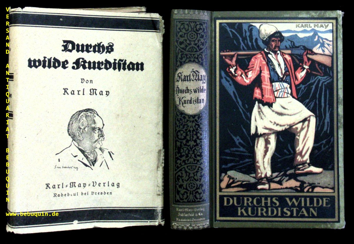 MAY, Karl: Durchs wilde Kurdistan. 172.– 186. Tsd. Volksausgabe. Radebeul (Karl May), (1929). 638 (2) S. farb. ill. OHLn mit OUmschl. (SU4) Umschlag etwas lädiert, Einband mit leichtem Wasserschaden, sonst mit goldglänzendem Rücken und farbstarkem Einband. = Gesammelte Werke, Bd. 2. Hermesmeier / Schmatz GW 2.28.
