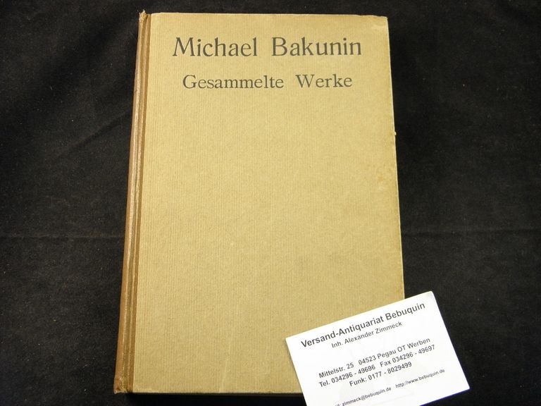BAKUNIN, Michael: Gesammelte Werke. Band 1. Berlin (Der Syndikalist), 1921. Gr. 8°. 306 (2) S. mit Portraitvignette, OHLn. Ecken leicht bestoßen, sonst gut erhalten. dt. EA. des seltenen ersten Bandes.