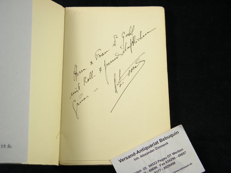 FOREL, O.L.: Aphorismes. Paris (Cluny), 1937. Gr. 8°. 111 (3) S. OKart. EA mit einer dreizeiligen eigenhändigen voll signierten Verfasserwidmung auf Vorsatz.