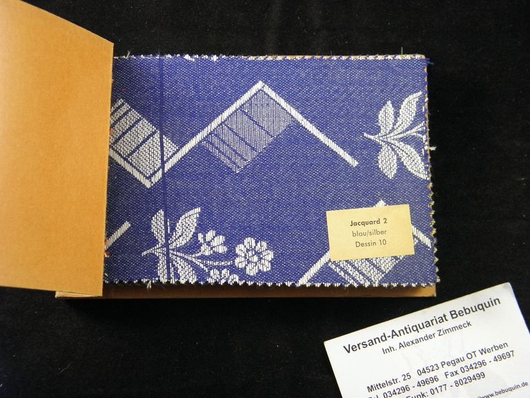 MUSTERBÜCHER.– TRIUMPH MATRATZEN.– Jacquard – Proben für Matratzenstoffe. Grenzach (Salubra-Werke), ca 1960. 10,5 x 16 cm. 43 Proben mit Namensaufklebern. OKart. seltener Katalog der von mir nicht zweifelsfrei recherchierten Firma. Vielleicht doch ein Ableger der Nürnberger?